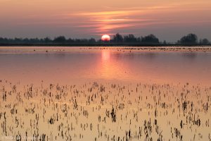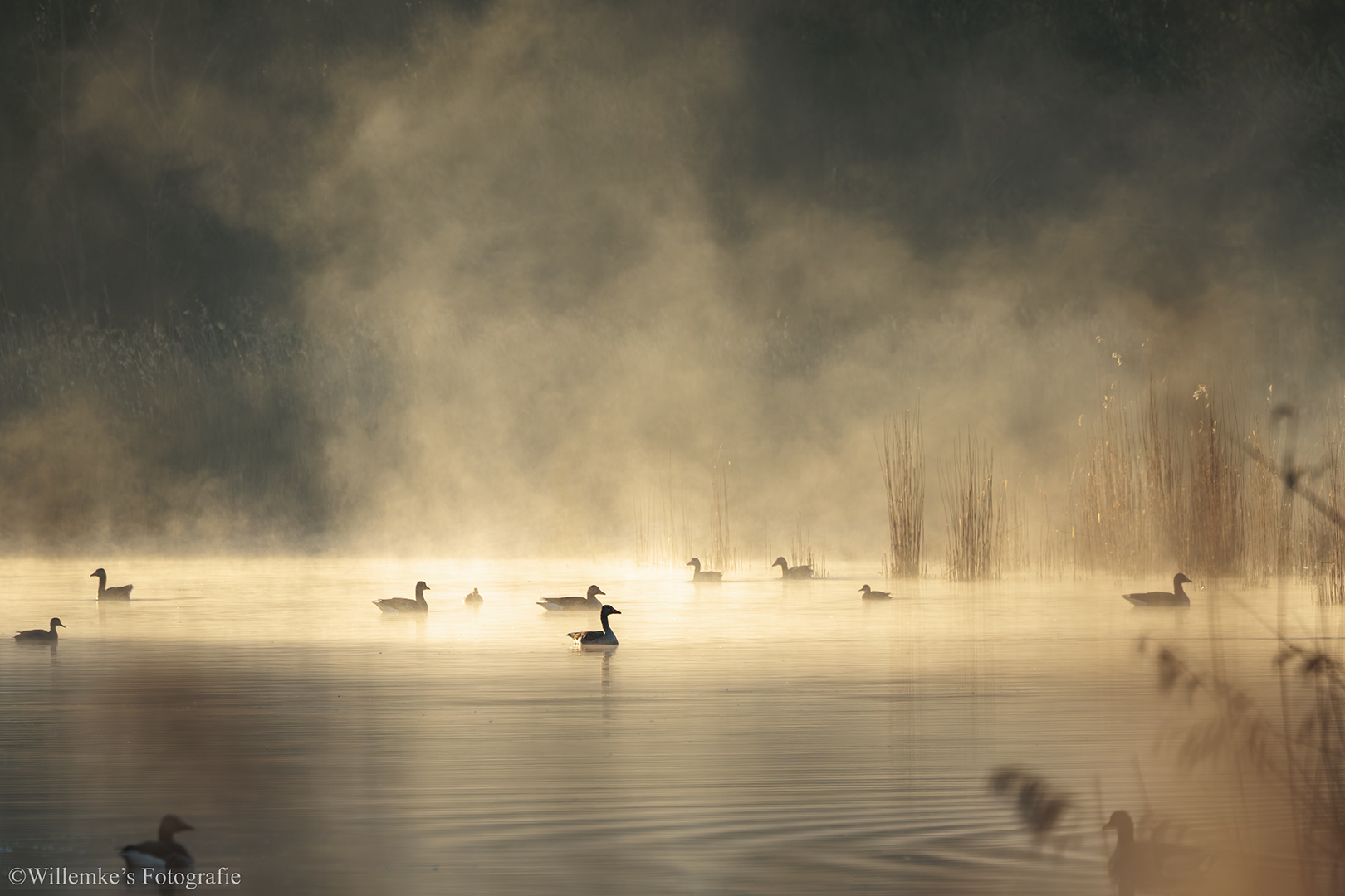 “Rust Willemke, kijk eerst even rond, wat zie je”, dat zeg je ook altijd tegen jouw deelnemers. Hé goed advies. Wanneer ik de plek gevonden heb en rustig sta te wachten op het moment suprême, besluiten mijn fotomodellen, een hele groep ganzen, luidkeels te vertrekken. Oké, het wordt daardoor een iets ander beeld, maar ook zeker de moeite waard.
